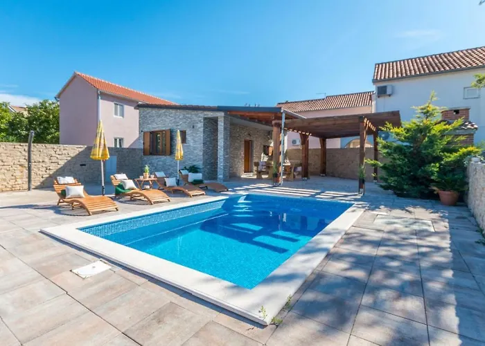 La Holiday Home Ema With Pool dispone una cocina bien equipada con cafetera/tetera, una nevera y un horno para satisfacer todas las necesidades de los huéspedes. El restaurante Awake bar se encuentra a tan solo 13 minutos a pie. El aeropuerto Zadar está ubicado a 30 km del alojamiento.